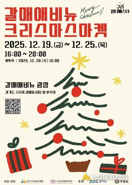 구리시상권활성화재단은 오는 12월 19일부터 25일까지 갈매 애비뉴 광장에서 ‘2025 구리윈터페스타–갈매애비뉴 크리스마스 마켓’을 개최한다고 밝혔다.