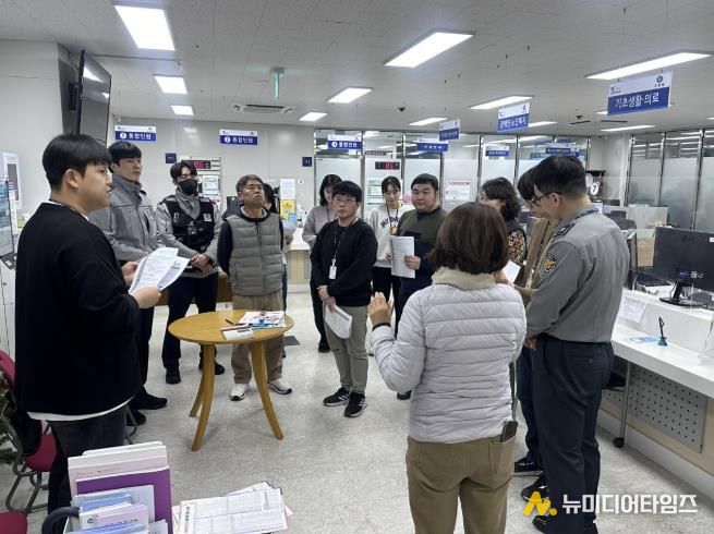 구리시 교문1동 행정복지센터는 지난 12월 15일 교문1동 행정복지센터 1층에서 민원 현장에서 발생할 수 있는 폭언·폭행 등 특이 민원 상황에 효과적으로 대응하기 위한 ‘2025년 하반기 특이 민원 대응 모의훈련’을 실시했다.