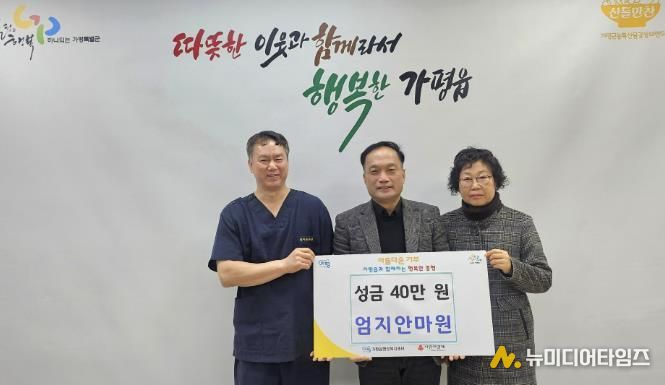 가평군에 소재한 엄지안마원은 최근 가평읍 행정복지센터를 방문해 이웃돕기 성금 40만 원을 기탁했다.