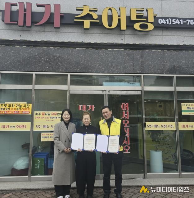 이번 협약에 따라 대가추어탕은 매월 정기 후원금을 지원하기로 했으며, 후원금은 온양4동 관내 취약계층 가정을 돕기 위한 복지사업에 활용될 예정이다.