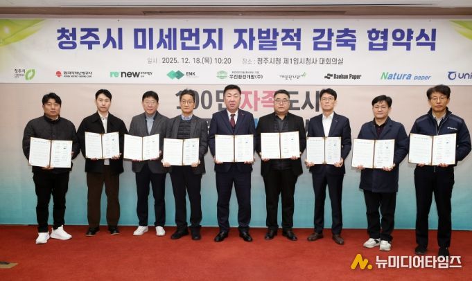 이범석 청주시장은 “미세먼지 감축을 위한 청주시의 노력에 지역 기업들이 자발적으로 동참해 주셔서 감사드린다”며 “이번 협약을 계기로 시민들이 체감할 수 있는 맑고 깨끗한 대기환경을 조성할 수 있도록 시와 기업이 함께 지속적으로 협력해 나가겠다”고 말했다.