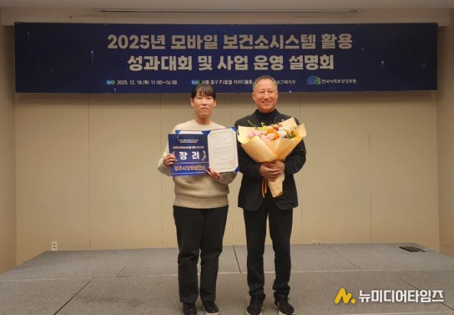 청주시 청원보건소는 18일 서울 중구 호텔PJ에서 열린 ‘2025년 모바일 보건소 활용 성과대회’에서 모바일 보건소 시스템 활용 우수기관으로 선정돼 사회보장정보원장 표창을 수상했다.
