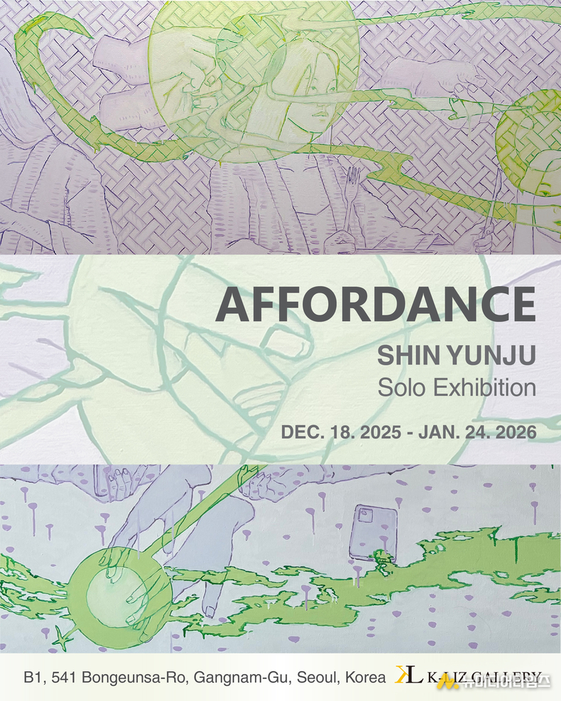서울 강남 봉은사로에 위치한 케이리즈 갤러리(대표 김현정 Liz Kim)에서 신윤주 작가의 개인전 《어포던스(Affordance)》가 12월 18일 막을 올렸다. 이번 전시는 일상 속 반복되는 공간과 감정의 잔재들이 중첩되며 생성하는 ‘시간의 균열’을 회화로 풀어낸다. 전시는 2026년 1월 24일까지 이어진다.