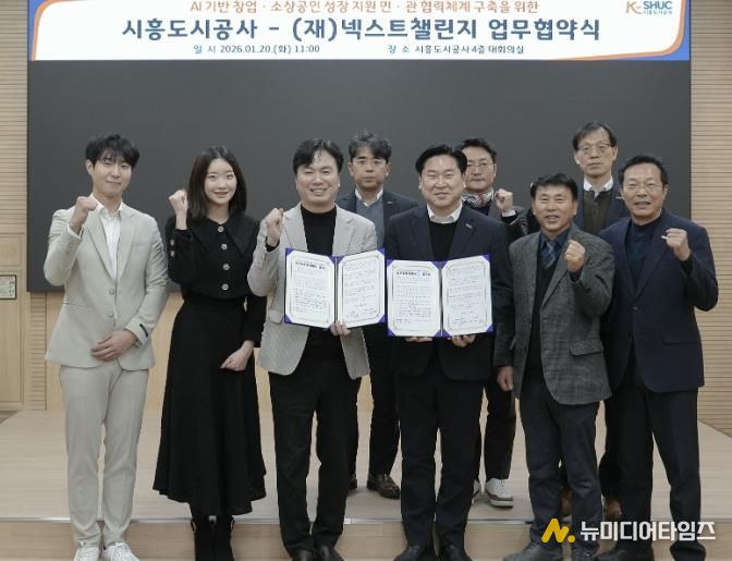 시흥도시공사는 지난 20일, 재단법인 넥스트챌린지(이하 넥스트챌린지)와 AI를 기반으로 창업·소상공인 성장 지원 민·관 협력 체계 구축을 위한 업무협약을 체결했다고 밝혔다.