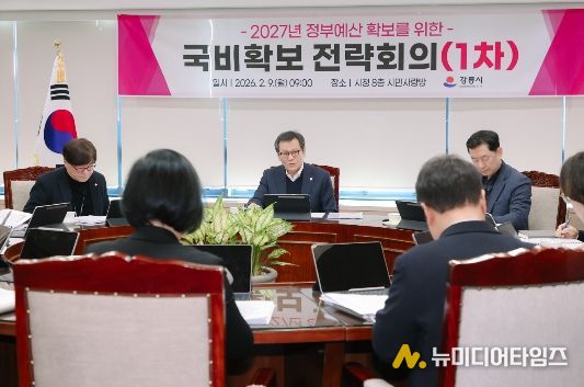 강릉시는 9일 월요일 김홍규 강릉시장 주재로 '제1차 국비확보 전략회의'를 실시하여, 핵심사업 완성을 위한 국비확보 총력추진을 위해 2027년 목표액을 지난해 4,771억 원에서 329억 원 증액된 5,100억 원으로 하고,