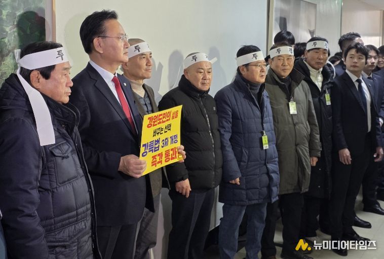 이 자리에는 유상범 국회의원(홍천・횡성・영월・평창)도 ‘강원도민의 삶을 바꾸는 선택. 강특법 3차 개정 즉각 통과’라고 적힌 피켓을 들고 행정안전위원회 의원들에게 강원특별법 3차 개정안의 조속한 처리를 요청했다.