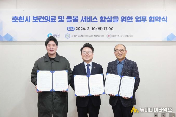 육동한 춘천시장은 10일 시장 접견실에서 (사)대한물리치료사협회 강원특별자치도지부, 대한근감소증물리치료학회와 업무협약(MOU)을 체결했다.