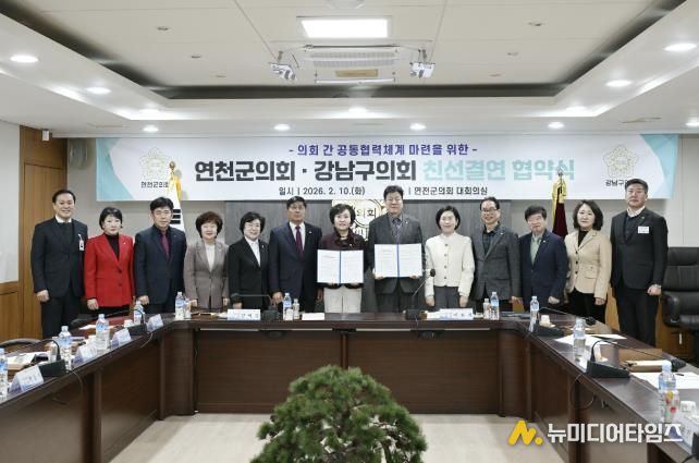 연천군의회와 서울시 강남구의회는 2026년 2월 10일 연천군의회 대회의실에서 친선결연식을 개최하고, 양 의회 간 우호 증진과 상호 협력을 위한 친선결연 협약식을 체결했다.