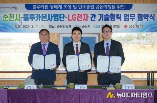 순천시는 11일 순천만습지에서 서울대 블루카본사업단, LG전자(주)와 함께 '블루카본 생태계 조성 및 탄소중립 공동 이행을 위한 업무협약'을 체결했다고 밝혔다.