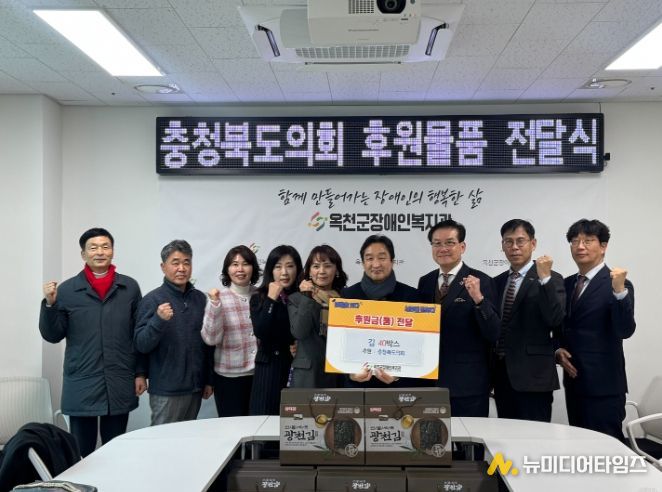 충북도의회 유재목 부의장(옥천1)과 박용규 의회운영위원장(옥천2)은 11일 설 명절을 맞아 옥천군장애인복지관을 방문해 후원 물품 전달식을 갖고 시설 종사자들을 격려하며 따뜻한 명절의 정을 나눴다.