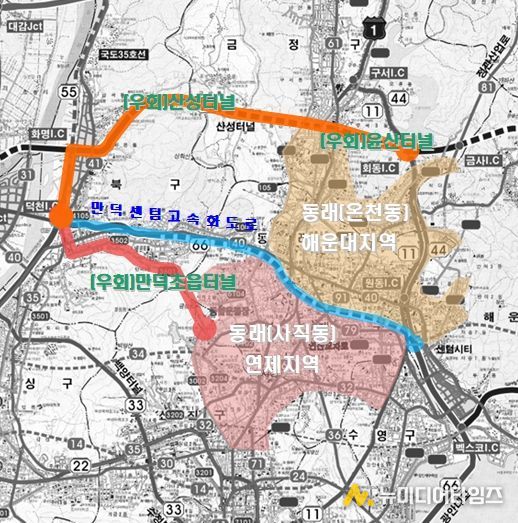 만덕IC 일원 등 만덕센텀 고속화도로에서 지정체가 발생할 경우, ▲동래구(사직동)·연제구와 만덕동 일원을 오가는 이용객은 만덕초읍(아시아드)터널을 ▲금정구 및 동래구 등 북부산권 이용객은 윤산터널과 산성터널의 교통상황을 비교해 이용하면 편리하다.