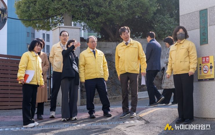 김석준 부산시교육감이 새학기 개학을 앞둔 지난 11일 오후 수영구 부산배화학교와 남구 신연초, 대연중학교 주변 통학로에 대한 안전 점검을 실시했다.