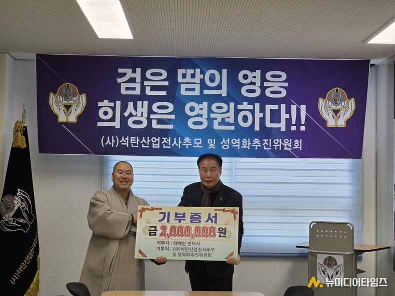 석탄 산업전사 광부들을 위해 지난 2월 10일 200만 원의 성금을 기부하며