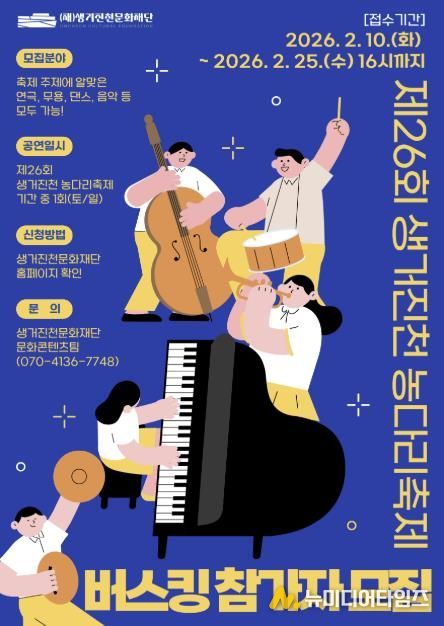 (재)생거진천문화재단은 관내 문화예술인의 창작활동 기회를 확대하고 관광객들에게 다채로운 공연을 선보이기 위해 오는 25일까지 ‘제26회 생거진천 농다리축제’ 버스킹 공연 참가자를 모집한다.