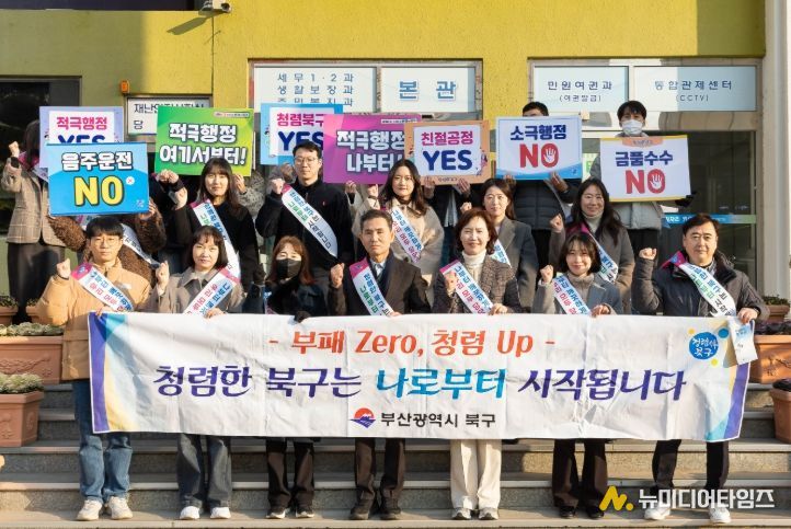 부산 북구는 다가오는 설 명절을 맞이 2월 13일 오전 구청 광장에서 전 직원을 대상으로 ‘클린북구 청렴ㆍ적극행정 캠페인’을 실시했다고 밝혔다.