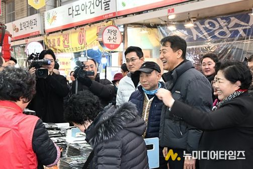 이날 오 시장은 온누리상품권으로 고기와 떡, 식혜 등을 구매하며 점포 상인들과 시민들의 목소리를 들었다.