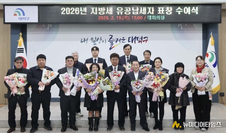 대덕구는 19일 구청 대회의실에서 ‘2026년 지방세 유공납세자 표창 수여식’을 열고, 체납 없이 성실히 세금을 납부해 온 개인과 법인, 단체를 격려했다고 밝혔다.