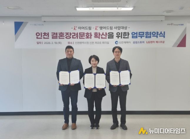 인천광역시는 2월 19일 시청 신관 회의실에서 인천지역 삼성스토어 및 LG전자 베스트샵과 결혼장려 문화 확산을 위한 민간협력 협약을 체결했다고 밝혔다.
