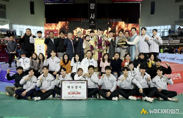 영암군민속씨름단 김민재 장사가 18일 충남 태안종합실내체육관에서 열린 ‘2026 위더스제약 태안설날장사씨름대회’ 140kg 이하 백두급에서 우승하며 설날장사 타이틀을 거머쥐었다.