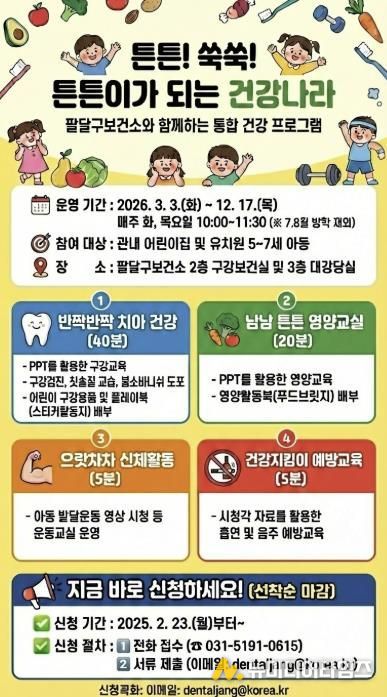 수원시보건소가 어린이집과 유치원 등 미취학 아동을 대상으로 ‘구강보건·건강증진 사업 프로그램’을 운영한다.