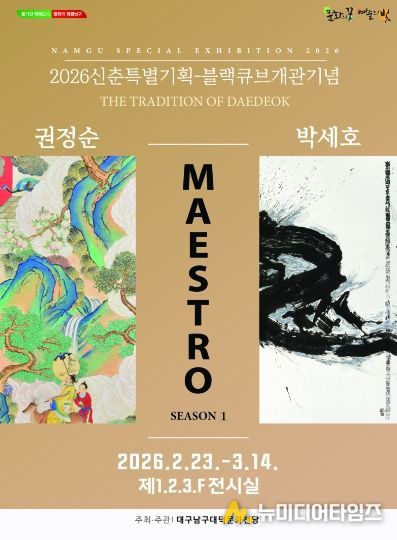 대구 남구 대덕문화전당이 전통 예술을 동시대의 시선으로 다시 읽는 신춘특별 기획전시 '권정순‧박세호 초청 MAESTRO 展'을 오는 2월 23일부터 3월 14일까지 대덕문화전당 제1, 2, 3, F 전시실 전관에서 개최한다.