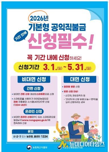 부평구가 오는 3월 1일부터 5월 31일까지 2026년 기본형 공익직불금 등록 신청을 접수한다.
