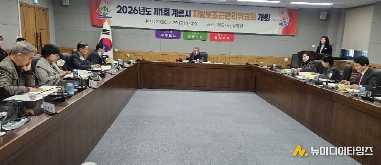 충남 계룡시는 20일 시청 상황실에서 2026년도 제1회 추경예산 지방보조금 예산편성 등을 위해 ‘제1회 계룡시 지방보조금관리위원회’를 개최했다고 밝혔다.