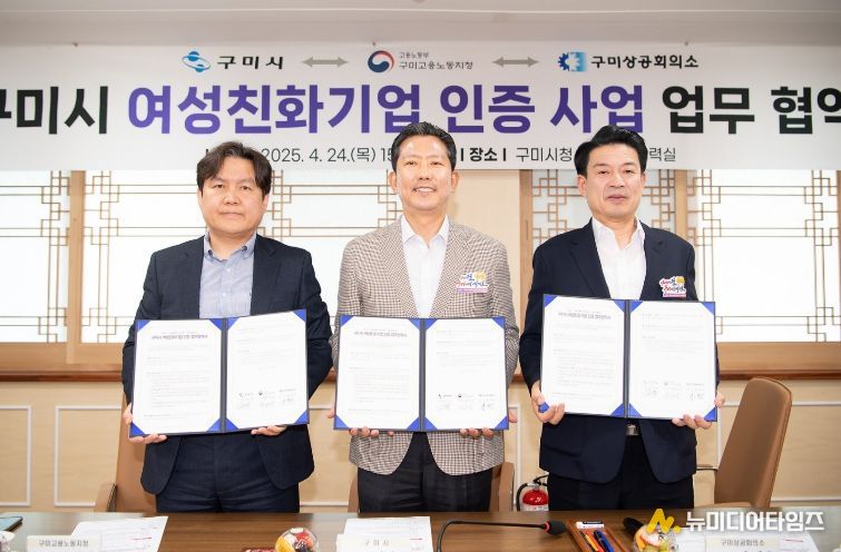 ![구미시 여성친화기업 인증 사업 업무 협약식(2025.04.24)[(좌)윤권상 노용노동부 구미지정장, (중앙)시장, (우)윤재호 구미상의회장]](/data/photos/portnews/202602/20260223092849-84075.jpg)
