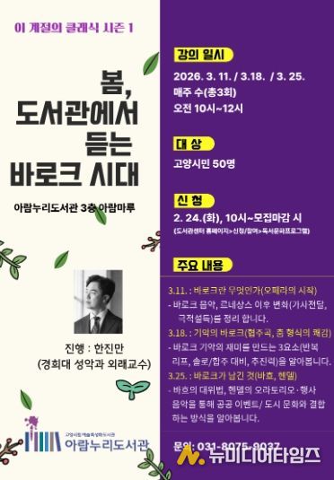 고양특례시 아람누리도서관은 2026년 한 해 동안 서양 음악사를 시대별로 조망하는 연간 기획 프로그램‘이 계절의 클래식’을 운영한다.