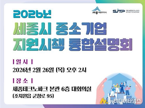 2026년 세종시 기업지원사업 통합설명회가 오는 2월 26일 오후 2시, 세종테크노파크 본관동 6층 대회의실에서 열린다.