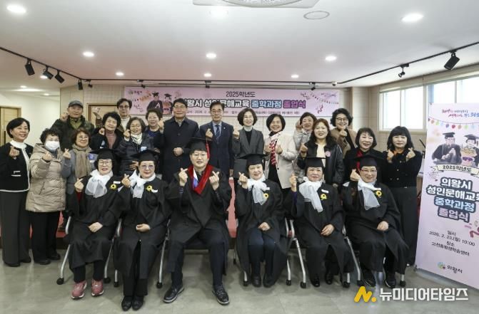 의왕시가 2월 23일 고천동평생학습센터에서 ‘2025학년도 성인문해교육 중학과정 제2회 졸업식’을 개최하며, 배움의 시기를 놓쳤던 어르신들에게 졸업장을 전달했다.