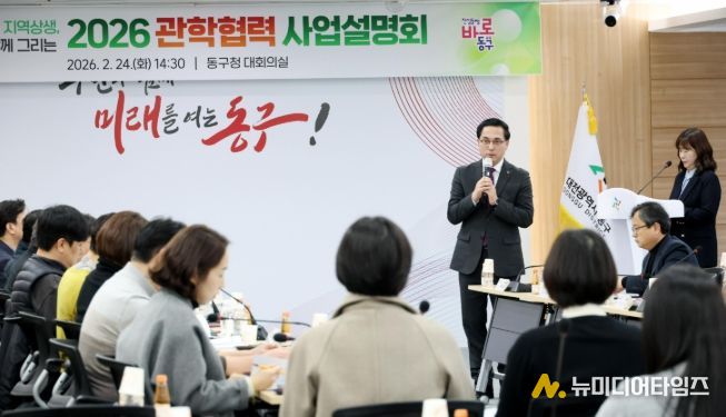 대전 동구는 24일 동구청 대회의실에서 대전대학교, 우송대학교, 대전보건대학교, 우송정보대학, 한국폴리텍Ⅳ대학 대전캠퍼스 등 지역 내 5개 대학과 함께 ‘2026년 구-대학 연계 관학협력 사업설명회’를 개최했다고 밝혔다.