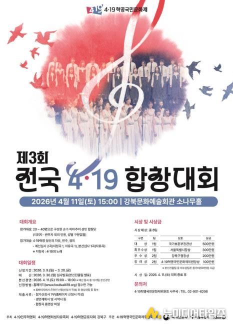 서울 강북구가 오는 4월 11일 오후 3시 강북문화예술회관 소나무홀에서 '제3회 전국 4·19 합창대회'를 개최한다.