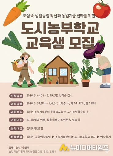 김해시는 도심 속 생활농업을 확산하기 위해 제16기 도시농부학교 교육 참가자를 모집한다고 25일 밝혔다.