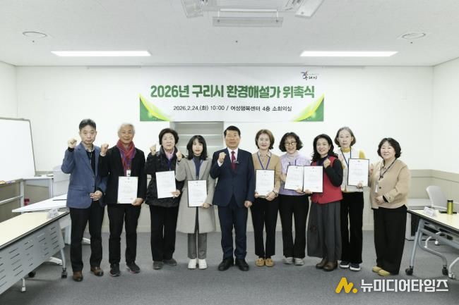 구리시는 24일 여성행복센터 소회의실에서 ‘2026년 구리시 환경해설가 위촉식’을 개최하고, 지역 환경교육을 이끌어 갈 환경해설가들에게 위촉장을 수여했다.