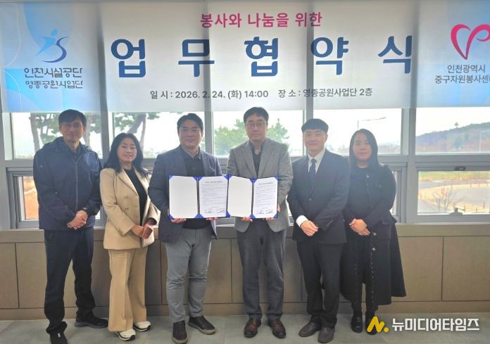 인천중구자원봉사센터는 인천시설공단 영종공원사업단(단장 한재혁)과 지난 24일 영종공원사업단 사무실에서 ‘지역사회 봉사와 나눔 문화 확산을 위한 업무협약’을 체결했다.