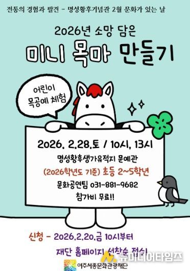 여주세종문화관광재단은 오는 2월 28일, 명성황후기념관 2월 문화가 있는 날 프로그램으로 '2026년 병오년 소망을 담은 미니 목마 만들기'를 진행한다.