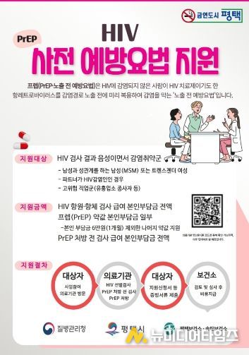 평택시는 감염 취약군을 대상으로 에이즈 바이러스(이하 HIV) 감염을 예방하기 위한 ‘노출 전 예방요법(Pre-Exposure Prophylaxis, 이하 PrEP)’을 지원한다고 밝혔다.