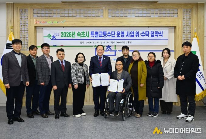 이번 협약에 따라 지체장애인협회 속초시지회는 2026년 3월 1일부터 2029년 2월 28일까지 특별교통수단 14대와 임차택시 4대 운영, 이동지원센터 관리를 맡게 된다.