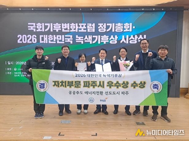 파주시는 2월 25일 여의도 국회 국회의원회관에서 열린 ‘2026 대한민국 녹색기후상’ 시상식에서 자치부문 우수상을 수상했다.