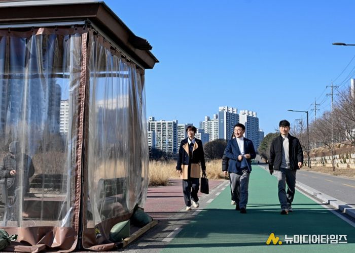 이날 시는 중랑천과 부용천 구간을 이동하며 따숨길 방풍막, 파고라, 교량 하부 따숨터 등 주요 시설을 살폈다. 특히 안전관리 강화를 위해 방풍시설 고정 상태와 지지대 결속 여부 등을 꼼꼼히 점검했다. 또한, 현장에서 시설을 이용하는 시민들과 소통하며, 시설 체감도와 개선 의견도 청취했다.