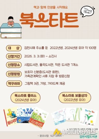 김천시립도서관(관장 이신기)은 오는 3월 3일부터 관내에 주소를 둔 유아들에게 생애 처음 책꾸러미를 선물하는 '북스타트'를 운영한다.