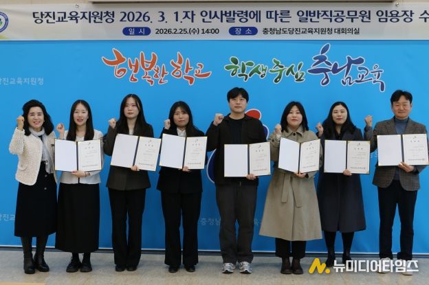 당진교육지원청은 25일, 2026년 3월 1일 자로 당진교육지원청 소속으로 전입한 직원과 교육청 전입 직원 21명을 대상으로 일반직공무원 임용장 교부식을 개최했다고 밝혔다.