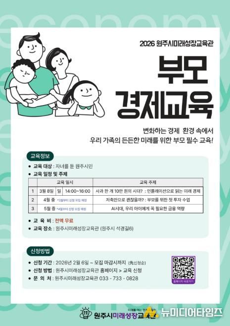 원주시미래성장교육관은 시민들에게 맞춤형 경제 지식을 제공하기 위해 부모와 신중년을 대상으로 ‘3월 맞춤형 경제교육’을 운영한다.