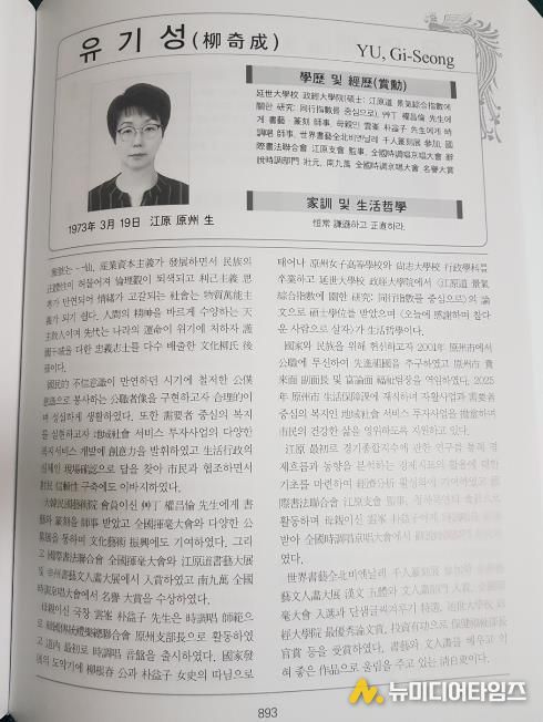 이번 등재는 원주시 공직자 가운데 최초 사례로, 원주시와 공직사회의 위상을 한층 높이는 계기가 됐다는 평가를 받고 있다.