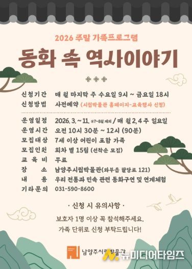 남양주시는 남양주시립박물관에서 관내 유아·어린이를 동반한 가족을 대상으로 주말 가족프로그램 ‘동화 속 역사이야기’를 운영한다고 27일 밝혔다.