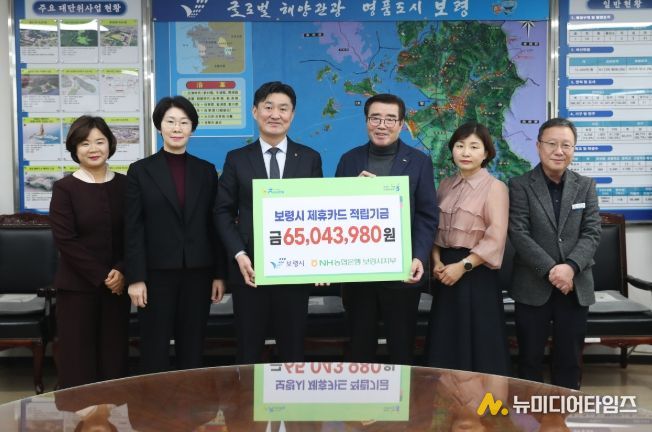 보령시는 27일 시장실에서 김동일 시장과 성지현 NH농협은행 보령시지부장 등 관계자가 참석한 가운데 법인제휴카드 사용 적립금 전달식을 가졌다.