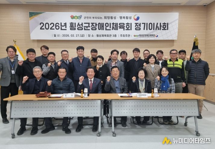 횡성군장애인체육회는 2월 27일 횡성군체육회관 회의실에서 ‘2026년 정기이사회’를 개최하고 장애인 체육 발전을 위한 본격적인 행보에 나섰다.