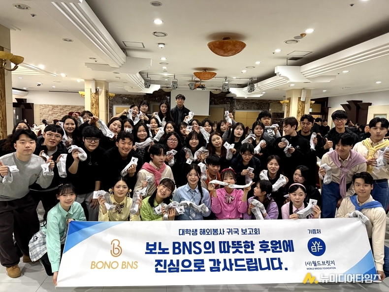 이번 행사를 이끈 월드브릿지는 기업 네트워크를 기반으로 청년들의 국제 활동을 체계적으로 지원하며 민간 외교의 토대를 다져왔다. 특히 보노BNS는 양말 1천 개를 후원하며 참여 학생들을 격려했고, 기업의 사회적 책임을 실천하는 따뜻한 동행으로 의미를 더했다. 청년의 열정과 기업의 후원이 만나 선한 영향력이 확산되는 상징적 장면이었다.