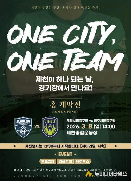 제천시민축구단이 오는 3월 8일 오후 2시, 제천종합운동장에서 역사적인 홈 개막전을 연다.